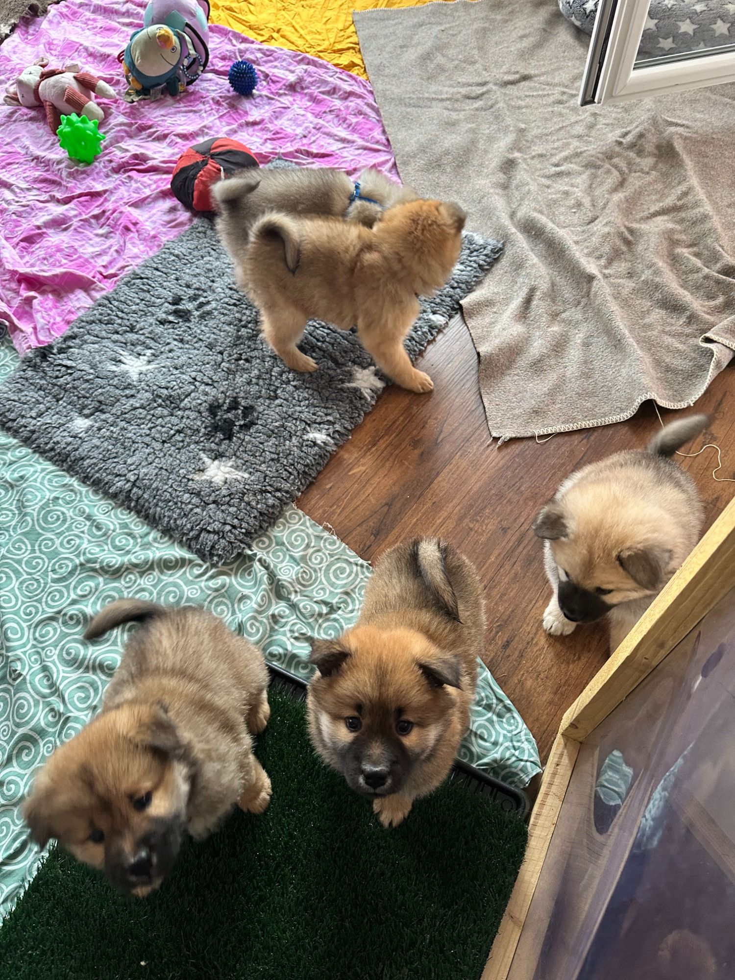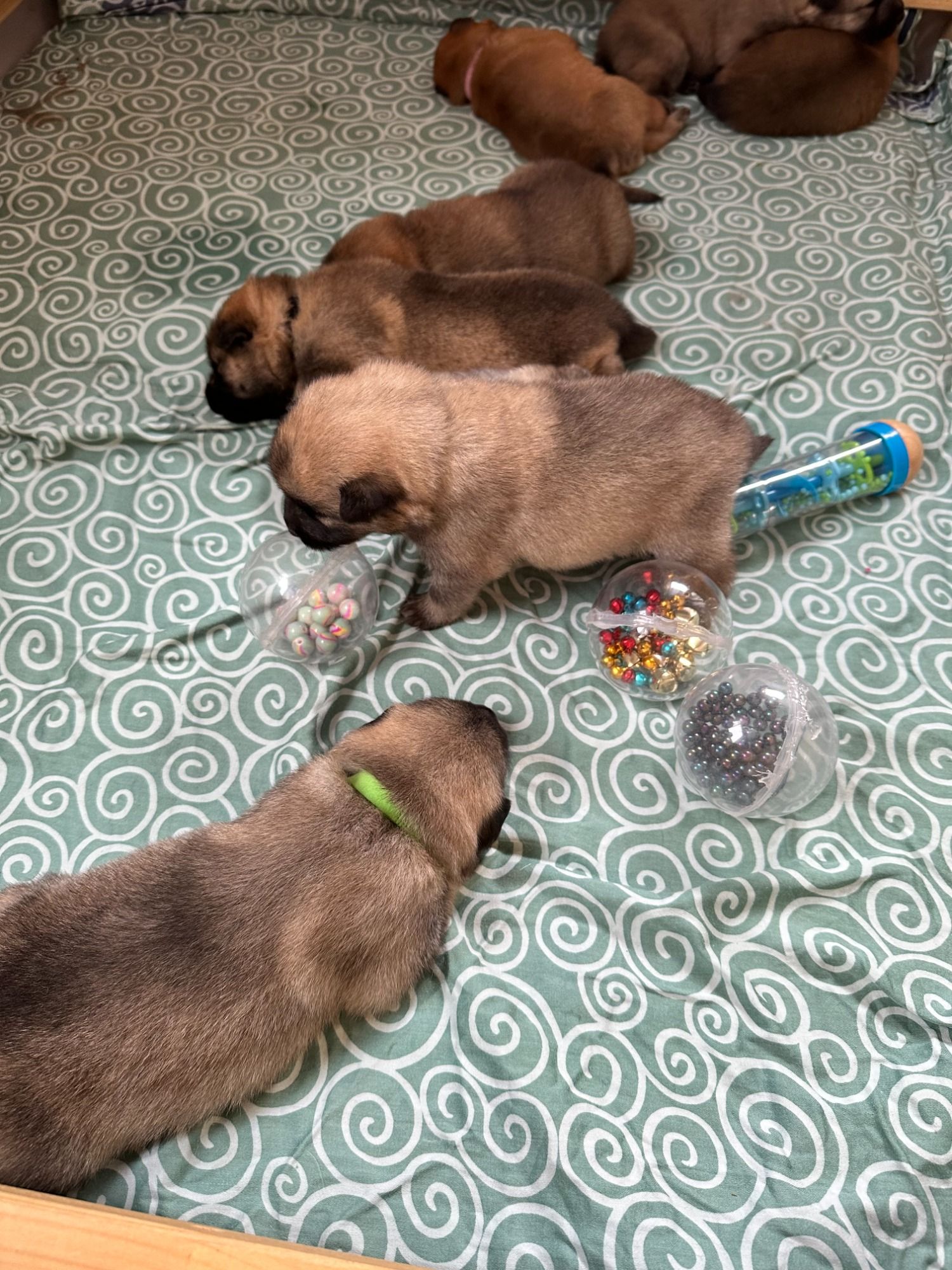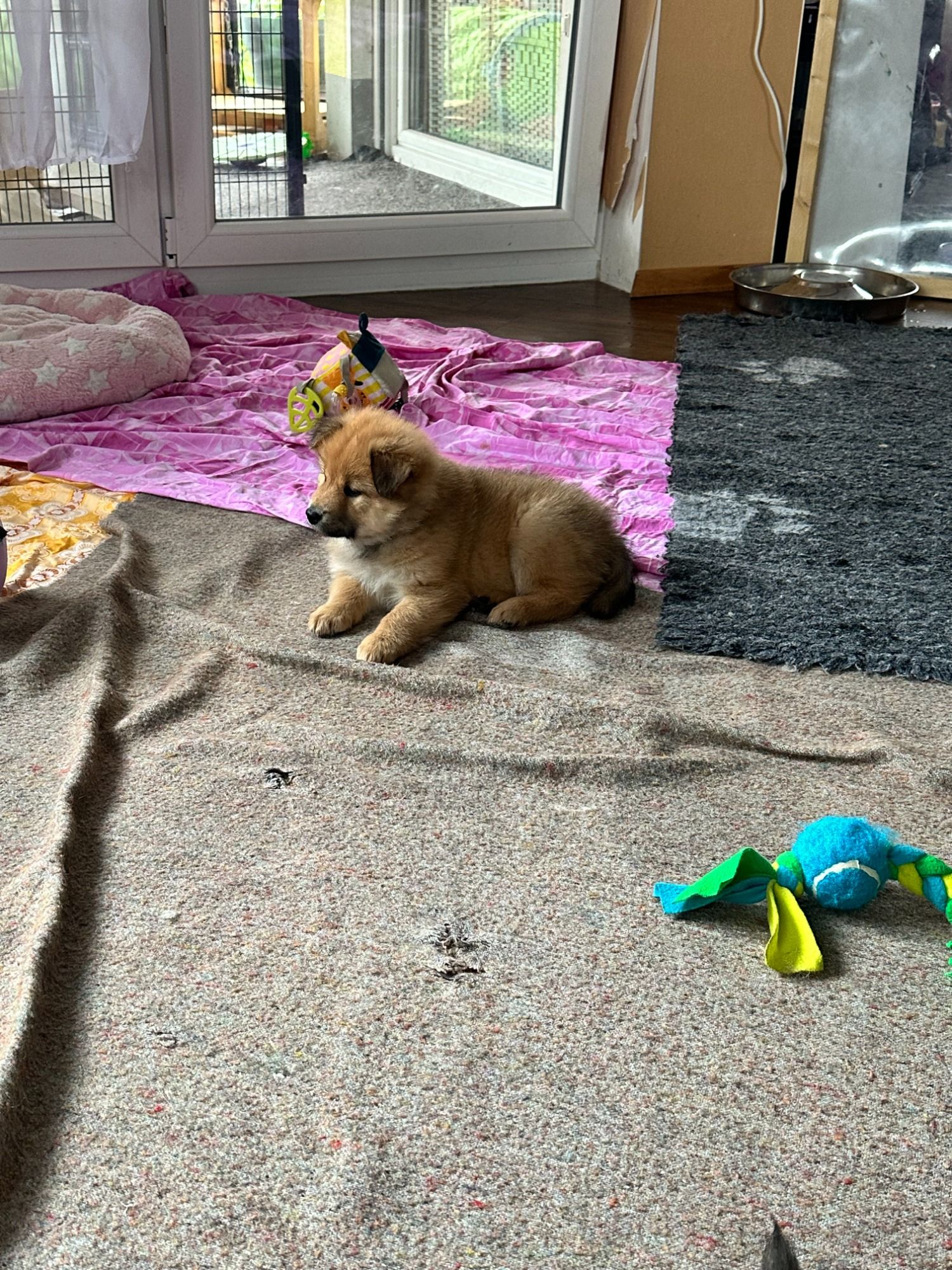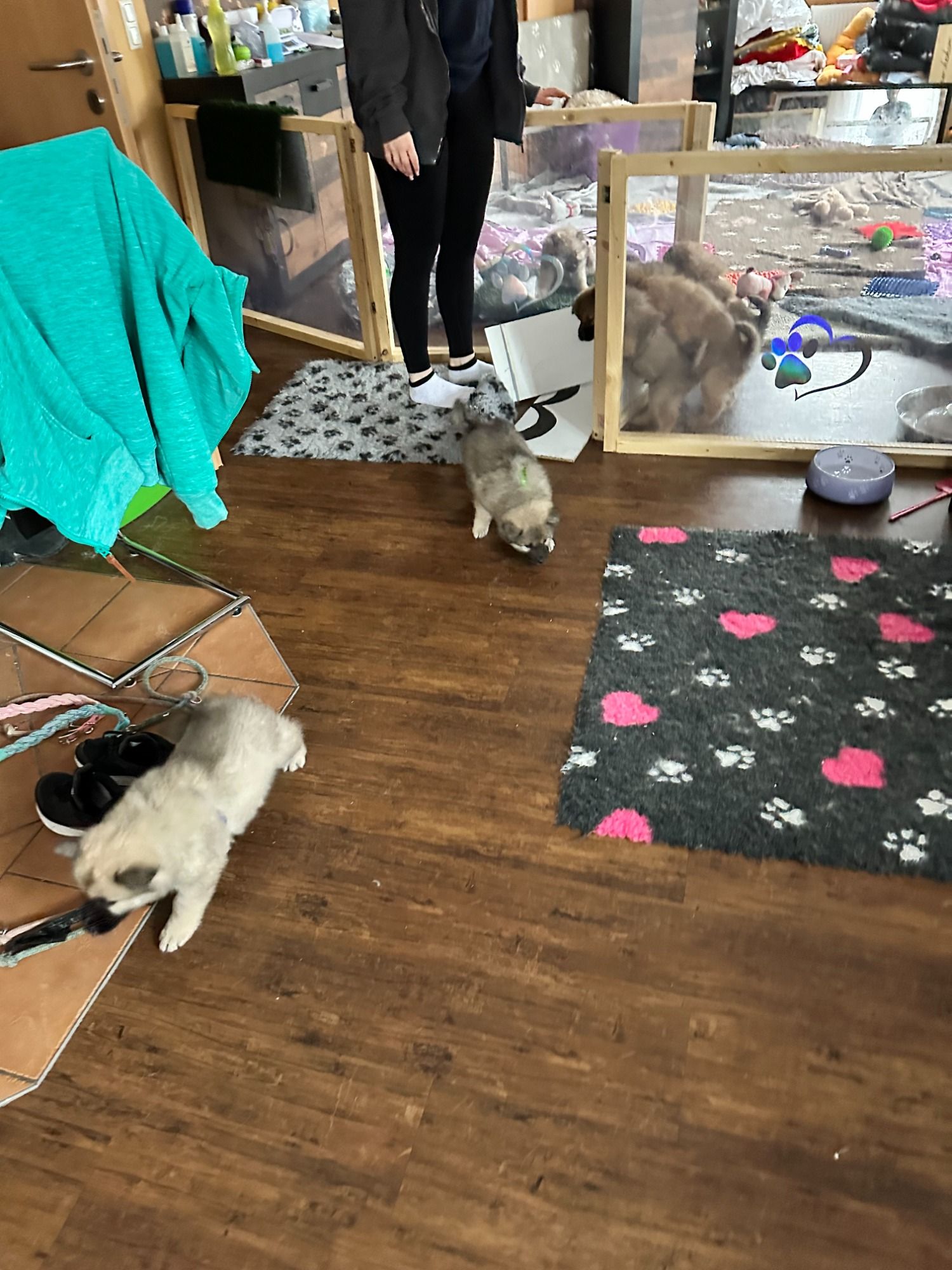 Es wurde entwurmt, immer wieder neue Untergründe, es gab neue Halsbänder, unsere Augen sind geöffnet, es gab erste Spielsachen