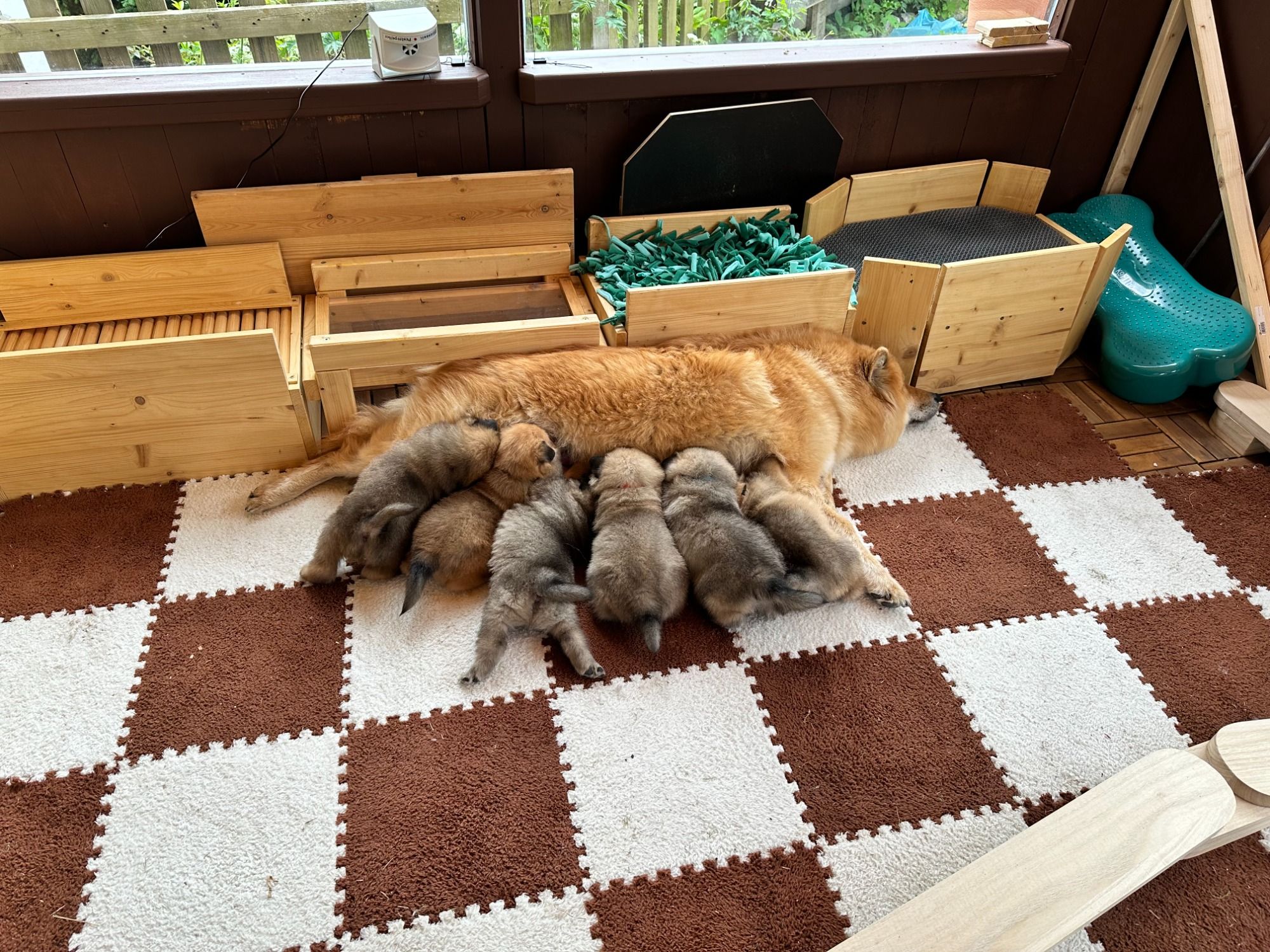 ab dieser Woche hören die Bärchen täglich Alltagsgeräusche zur Sensibilisierung, es gab die erste Welpenmilch und sie werden immer aktiver, Mama Rica hat das erstemal ausserhalb der Box gesäugt