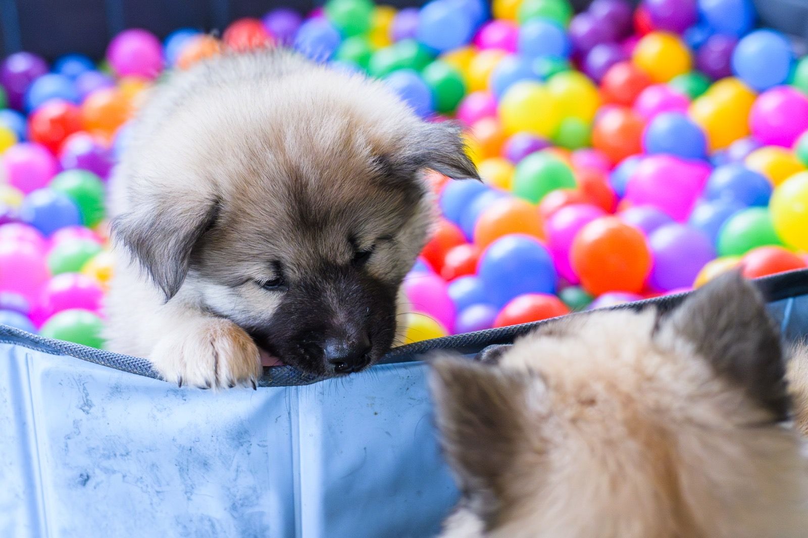 Diese Woche war Papa wieder da. Wir haben fast täglich Besuch und werden immer munterer. Wir sind gerne draußen und es gab ein gesondertes Fotoshooting im Bällebad von Bakanis Herrchen